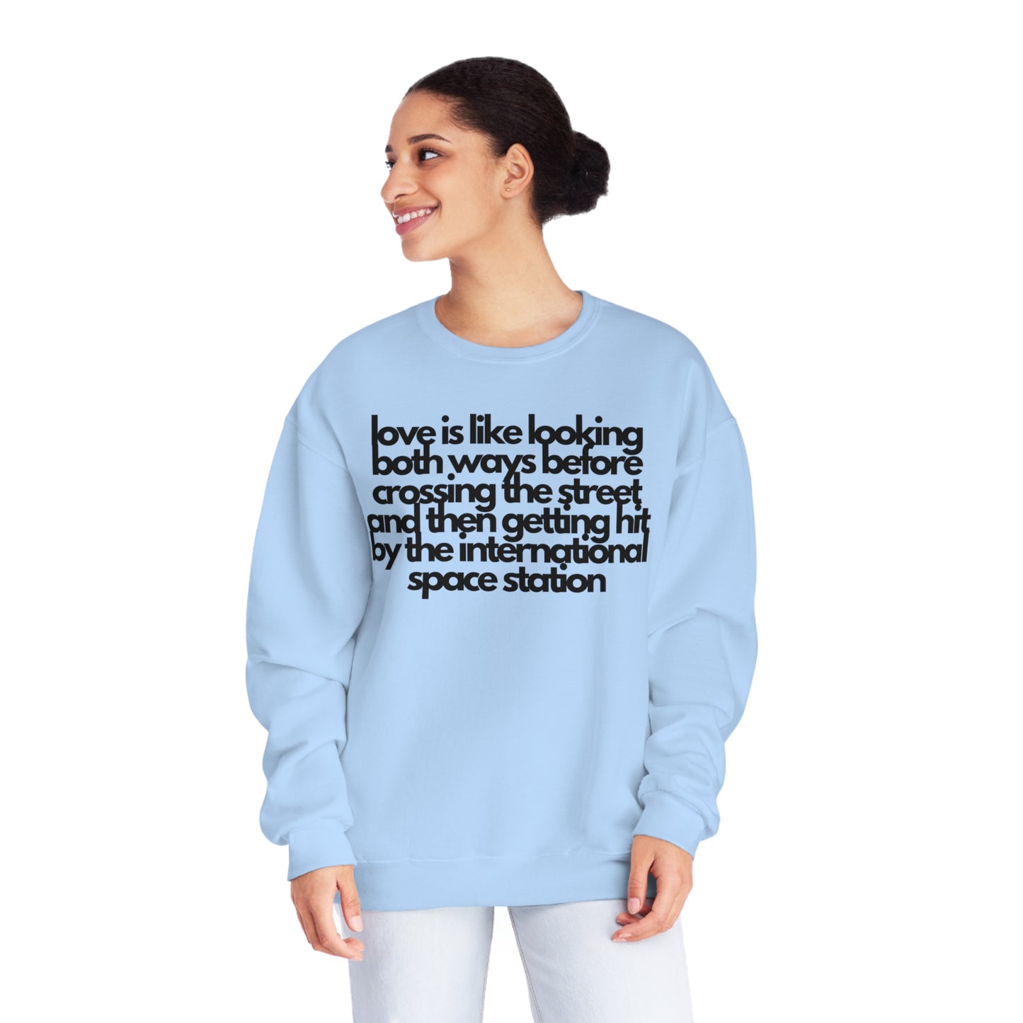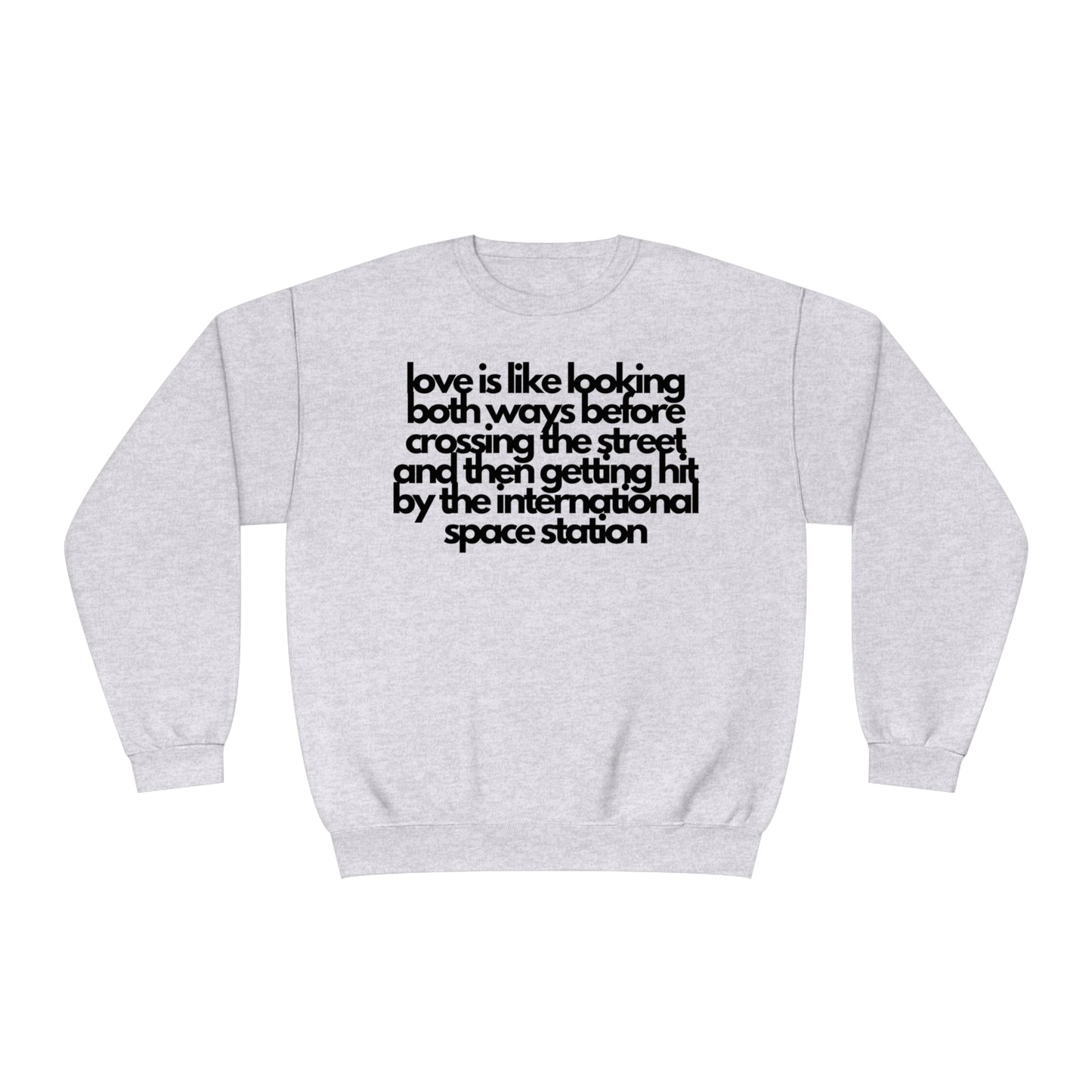 Love Is like Looking Both Ways Before Crossing The Street And Then Getting Hit By The International Space Station Sweatshirt